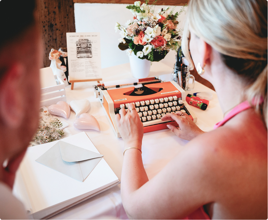 In einer digitalen Welt bringt das Schreibmaschinen-Gästebuch den Charme vergangener Zeiten zurück – und lässt deine Feier zu etwas ganz Besonderem werden.