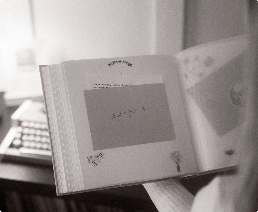 schreiben unsere eigene Geschichte schon seit der Schulzeit – damals noch übers Handy getippt. Aber für unsere Hochzeit wollten wir etwas Schwarz auf Weiß, etwas Bleibendes. So entstand die Idee, die wir jetzt mit dir teilen möchten. Mit unserem Schreibmaschinen-Gästebuch schaffst du ein Andenken, das nicht nur wunderschön aussieht, sondern auch eine echte Geschichte erzählt, schon im Schreibprozess – Buchstabe für Buchstabe.